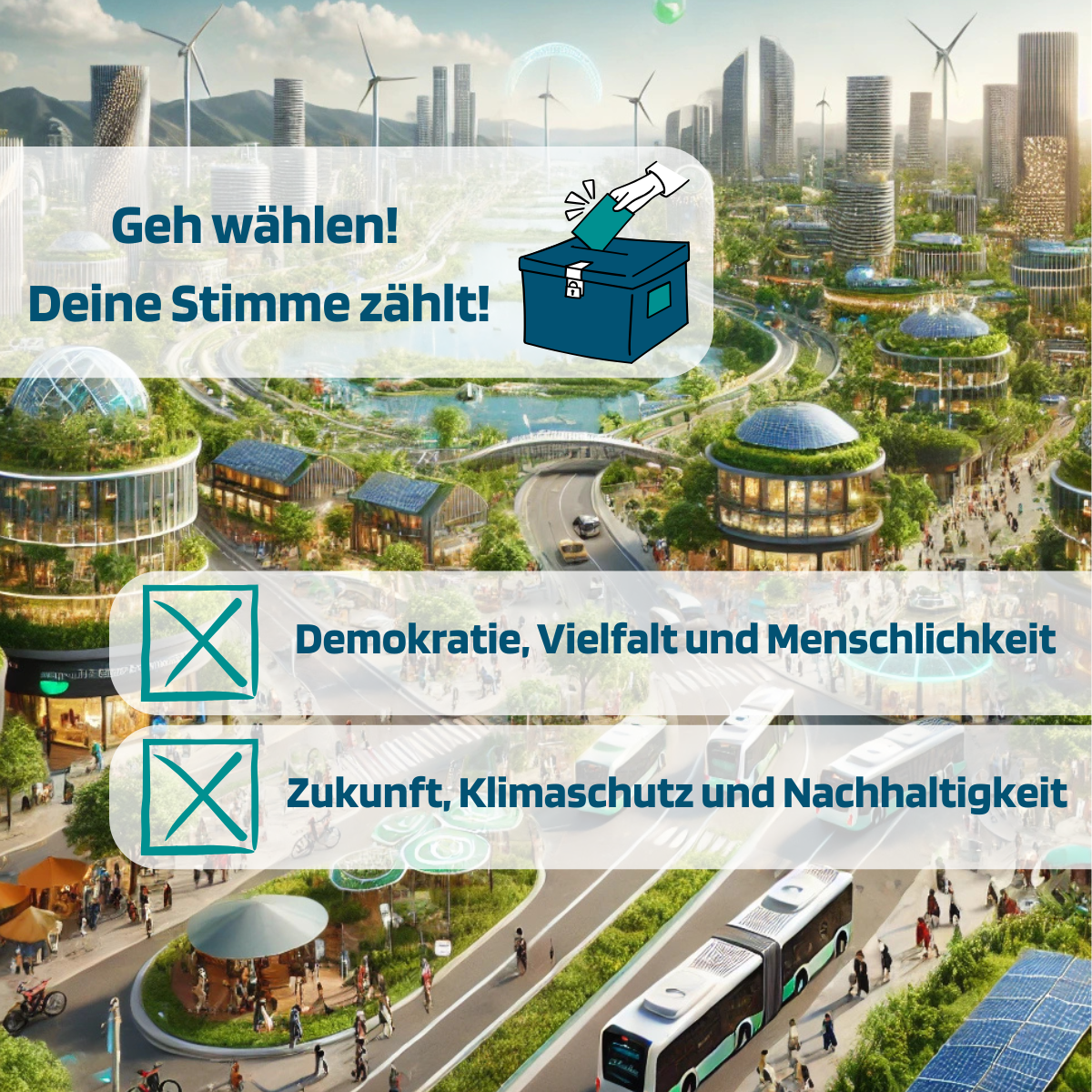 Am Sonntag entscheidet Deutschland. Aber es geht um mehr als Parteien und Programme – es geht um unsere Werte. Deine Stimme entscheidet mit, in welcher Welt wir morgen leben möchten!